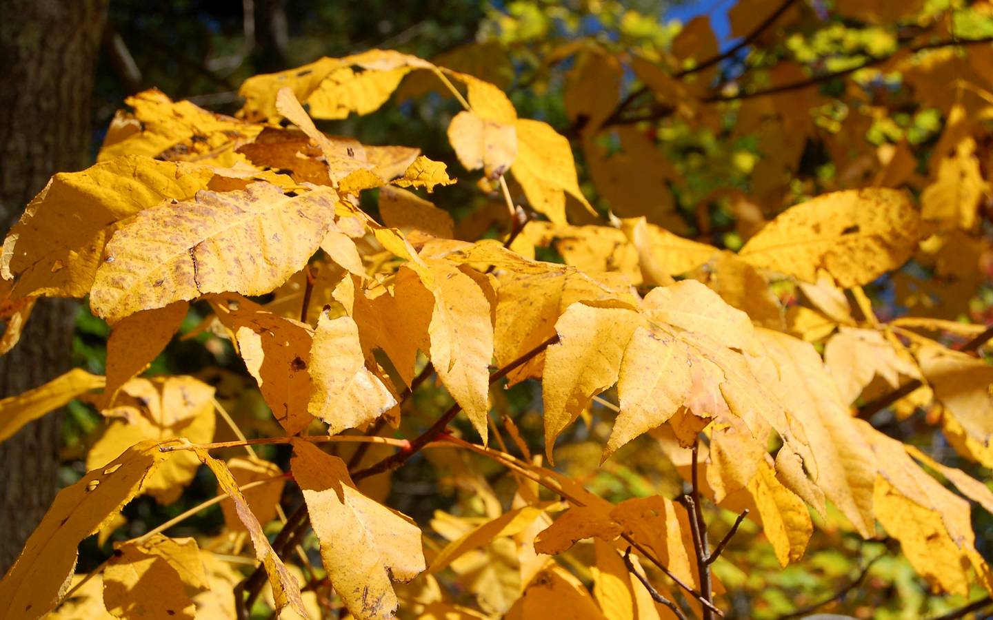 The Shagbark Hickory, is a large deciduous tree that typically grows 70-90’ (infrequently to 120’) tall with an irregular, oval-rounded crown. It likes both dry upland wooded slopes and hills and in moist valleys and lowland woods. Trunks mature to 2-3’ in diameter. This tree features smooth, medium yellow-green, odd-pinnate, compound leaves, each leaf having 5 (less frequently 7 or 9) finely-toothed, broadly lance-shaped, pointed leaflets. Leaflets range from 3-7” long. Leaves turn yellow to golden brown in fall. Non-showy, monoecious greenish yellow flowers appear in April-May, the male flowers in pendulous catkins (to 3-5” long) and the female flowers in short spikes. Female flowers give way to edible oval-rounded nuts. Each nut is encased in a moderately thick husk which splits open in four sections when ripe in fall. Nuts are attractive to a variety of wildlife. Bark of young trees is gray and smooth, but exfoliates in long strips with age. The exfoliation is more recurved and pronounced than on the similar-in-appearance shellbark hickory. Hickory wood is often used to cure/smoke meats. It is also an excellent firewood/fuel. The wood is extremely hard and is used to make a variety of products including tool handles, ladders, gun stocks and furniture. Hickory is denser, stiffer, and harder than either White Oak or Hard Maple